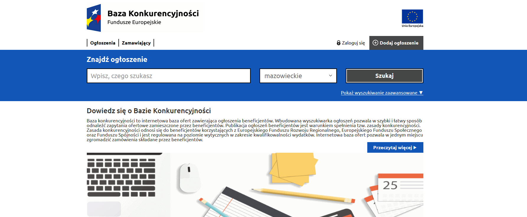 Jeśli jesteś beneficjentem funduszy unijnych musisz pamiętać o publikowaniu zapytań ofertowych w bazie konkurencyjności, czyli internetowej bazie ogłoszeń dostępnej na stronie www.bazakonkurencyjnosci.funduszeeuropejskie.gov.pl. Od 1 stycznia 2018 r. zobowiązane są do tego również podmioty starające się o unijne dofinansowanie w ogłoszonych konkursach.