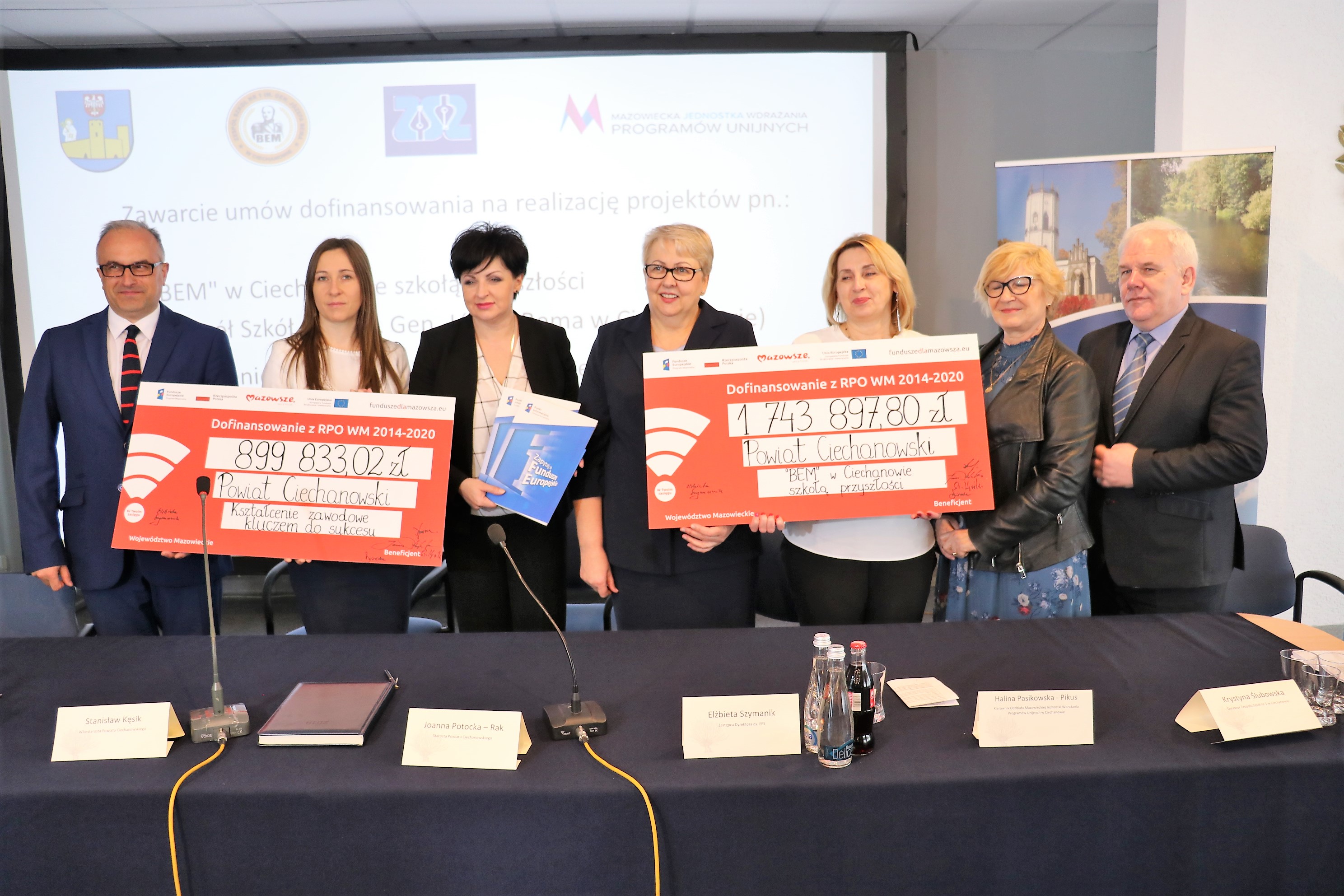 W najbliższych miesiącach do dwóch ciechanowskich zespołów szkół trafi ponad 2,6 mln zł dofinansowania. Dzięki tym środkom uczniowie zyskają lepsze możliwości kształcenia i zdobycia praktycznych umiejętności zawodowych przydatnych na rynku pracy. Umowy w tej sprawie podpisali: Elżbieta Szymanik Zastępca Dyrektora MJWPU, Joanna Potocka-Rak Starosta Ciechanowski, Stanisław Kęsik Wicestarosta oraz Hanna Dworecka Skarbnik Powiatu.
