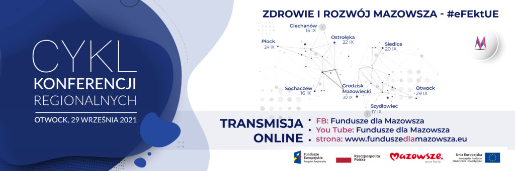 Konferencja regionalna w Otwocku już dzisiaj 29 września w godzinach 10:00-13:50. W tym roku hasło konferencji to „Zdrowie i rozwój Mazowsza – #eFEktUE. Czy środki europejskie pomogły przetrwać trudny czas pandemii? Jak subregion warszawski wschodni poradził sobie i czy wygrał walkę z COVID-19? Na te pytania otrzymamy odpowiedź podczas najbliższego wydarzenia. Wystąpią beneficjenci z regionu, którzy zrealizowali swoje projekty dzięki wsparciu funduszy europejskich.