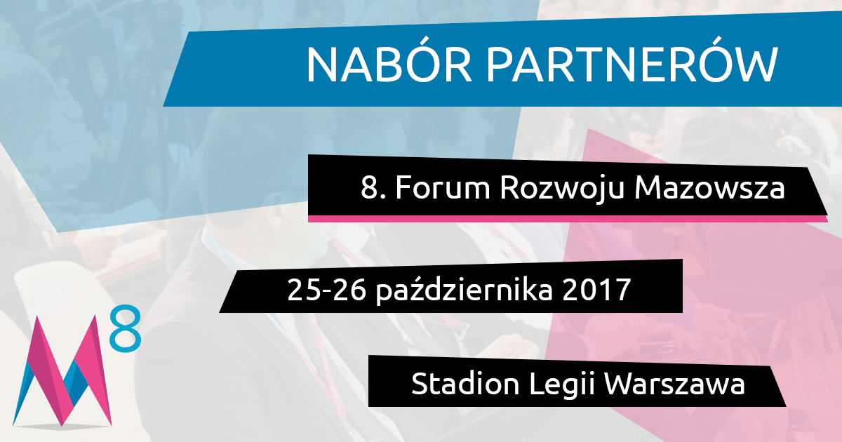 Mazowiecka Jednostka Wdrażania Programów Unijnych ogłasza otwarty nabór partnerów 8. Forum Rozwoju Mazowsza organizowanego w dniach 25-26 października na Stadionie Legii w Warszawie. Do współpracy zapraszamy samorządy, ośrodki naukowe, organizacje pozarządowe i inne podmioty, które pod względem profilu działalności wniosą cenny wkład merytoryczny do programu wydarzenia.