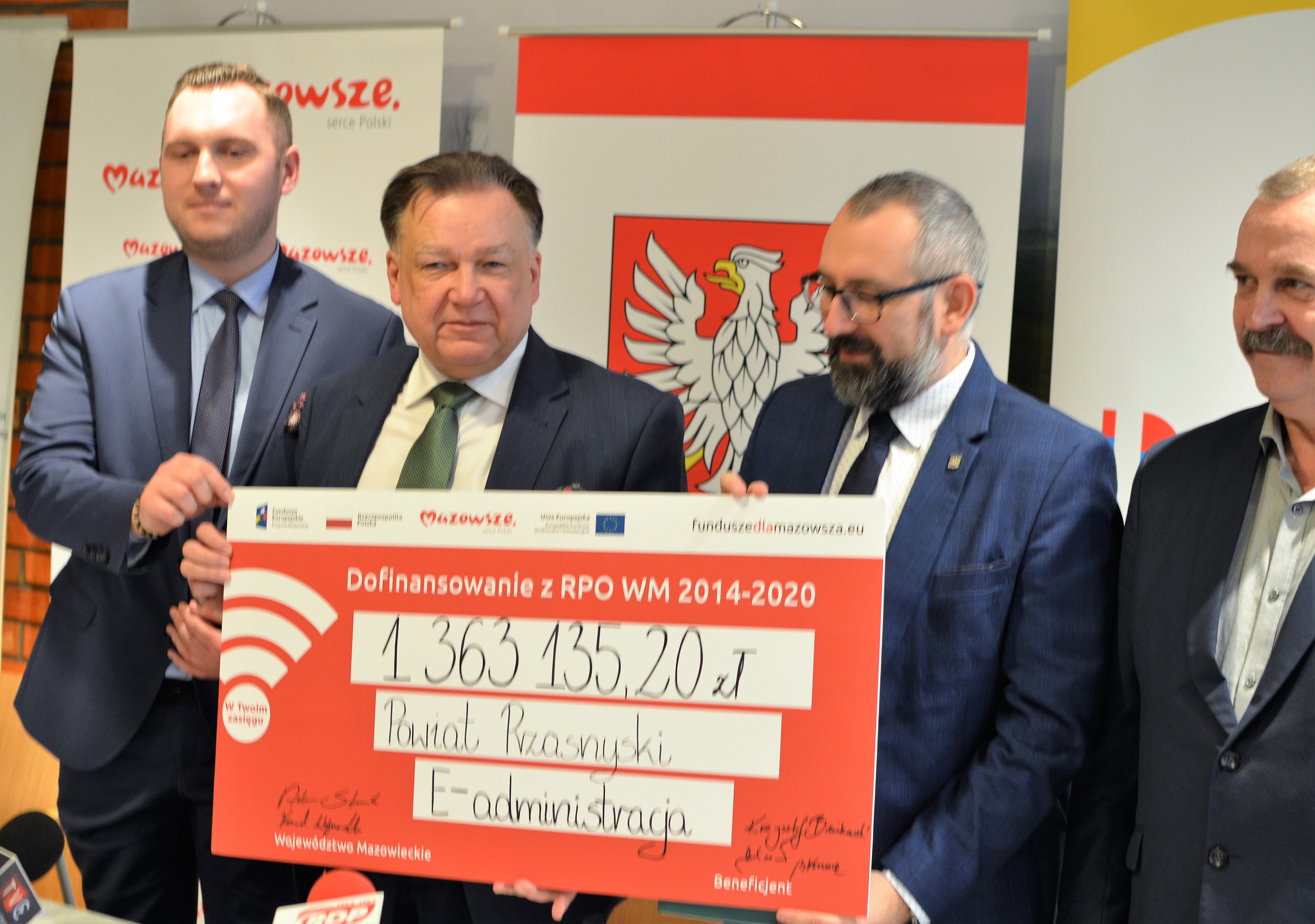 Wkrótce dzięki wsparciu funduszy europejskich mieszkańcy powiatu przasnyskiego szybko i bez wychodzenia z domu będą mogli załatwić sprawy urzędowe przez internet. Inwestycja dotyczy wdrożenia i uruchomienia e-usług publicznych oraz zakupu sprzętu informatycznego. Decyzją zarządu województwa mazowieckiego projekt otrzyma ponad 1,3 mln zł unijnego dofinansowania. Umowę w tej sprawie podpisali marszałek Adam Struzik, starosta przasnyski Krzysztof Bieńkowski i wicestarosta przasnyski Waldemar Marek Trochimiuk.