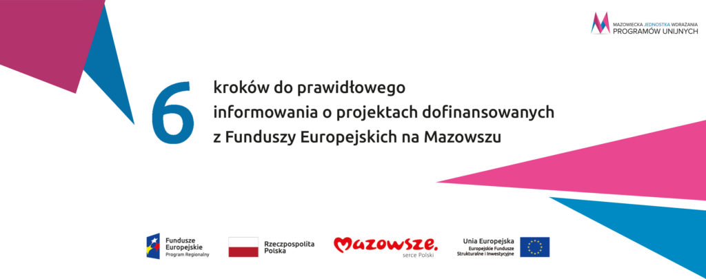 Jesteś Beneficjentem Funduszy Europejskich z Regionalnego Programu Operacyjnego Województwa Mazowieckiego 2014-2020? Gratulujemy i życzymy powodzenia w realizacji projektu! Pamiętaj, że decydując się na korzystanie z wsparcia z Unii Europejskiej zobowiązałeś się do informowania o dofinansowaniu. Jest to też jeden z warunków rozliczenia projektu. Jak prawidłowo wypełniać obowiązki informacyjno-promocyjne? Zapraszamy do lektury poradnika pt. „6 Kroków do prawidłowego informowania o projektach dofinansowanych z Funduszy Europejskich na Mazowszu”, przygotowanego przez Mazowiecką Jednostkę Wdrażania Programów Unijnych.