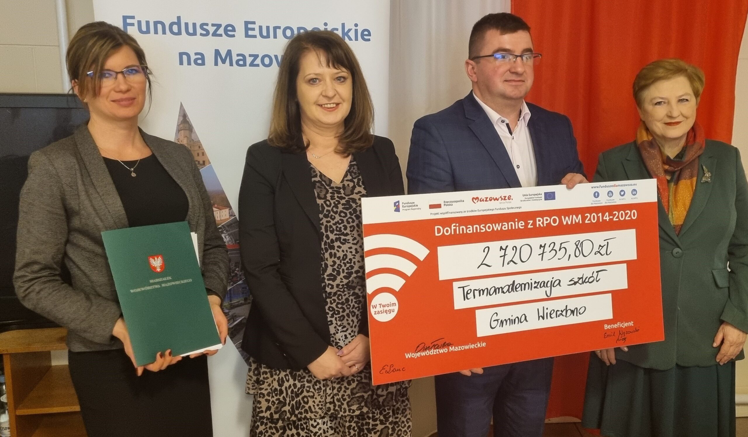 Gmina Wierzbno inwestuje w ekologię. Dwie szkoły podstawowe w Wierzbnie i Krypach przejdą kompleksową termomodernizację. Dzięki decyzji zarządu województwa mazowieckiego gmina otrzyma na ten cel ponad 2,7 mln zł unijnego wsparcia w ramach RPO WM 2014-2020. Dziś umowę w tej sprawie podpisały członkinie zarządu województwa mazowieckiego Elżbieta Lanc i Janina Ewa Orzełowska oraz władze gminy.